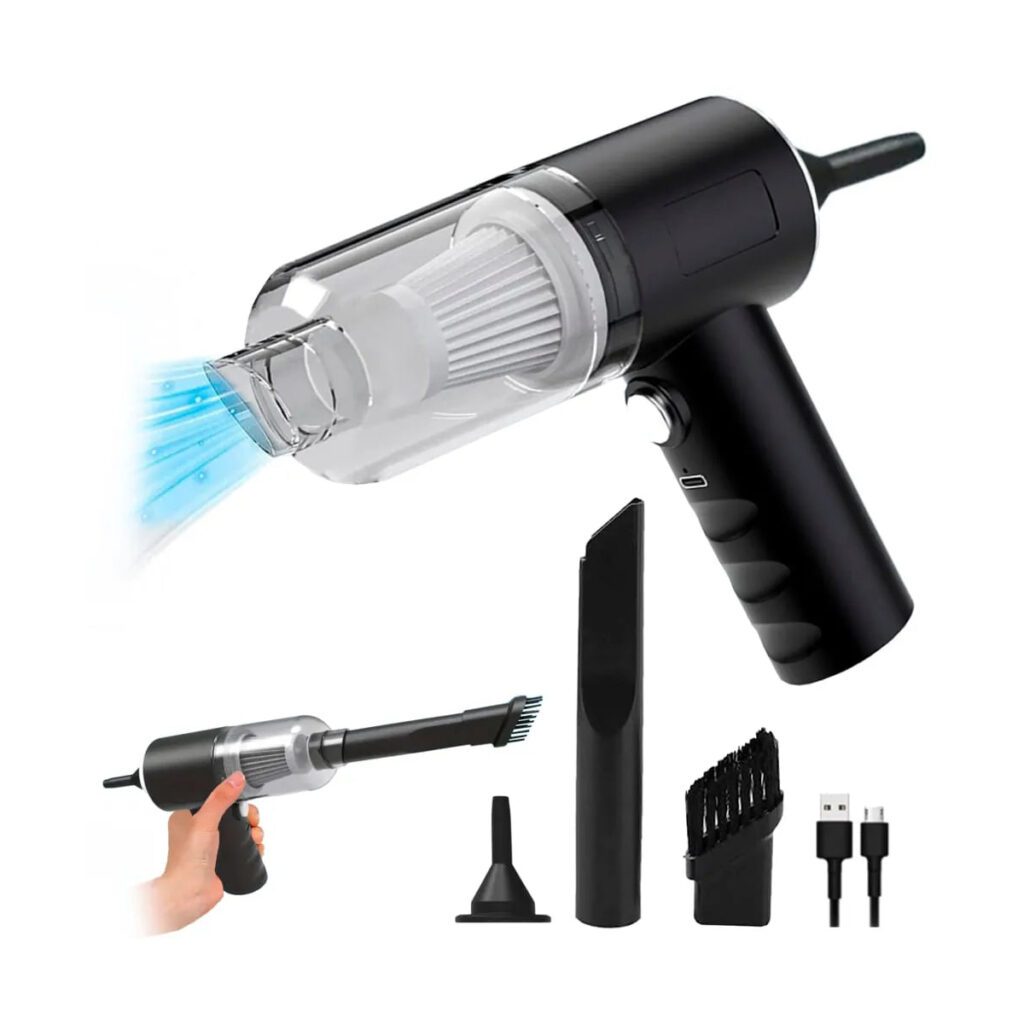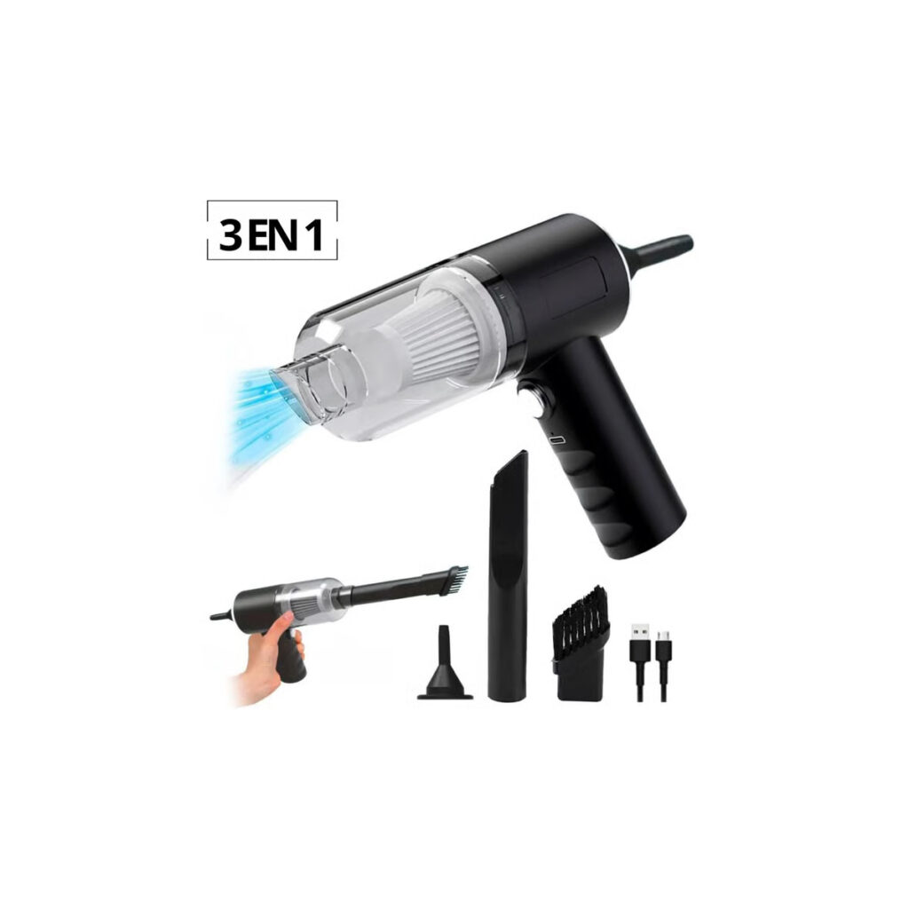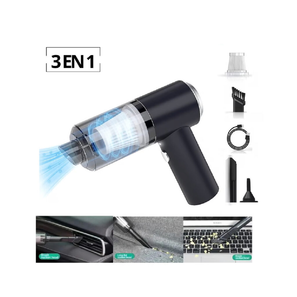 ¡La solución práctica para limpiar tu auto y hogar al instante! Compacta, potente y fácil de usar, será tu mejor aliada contra el polvo y la suciedad.