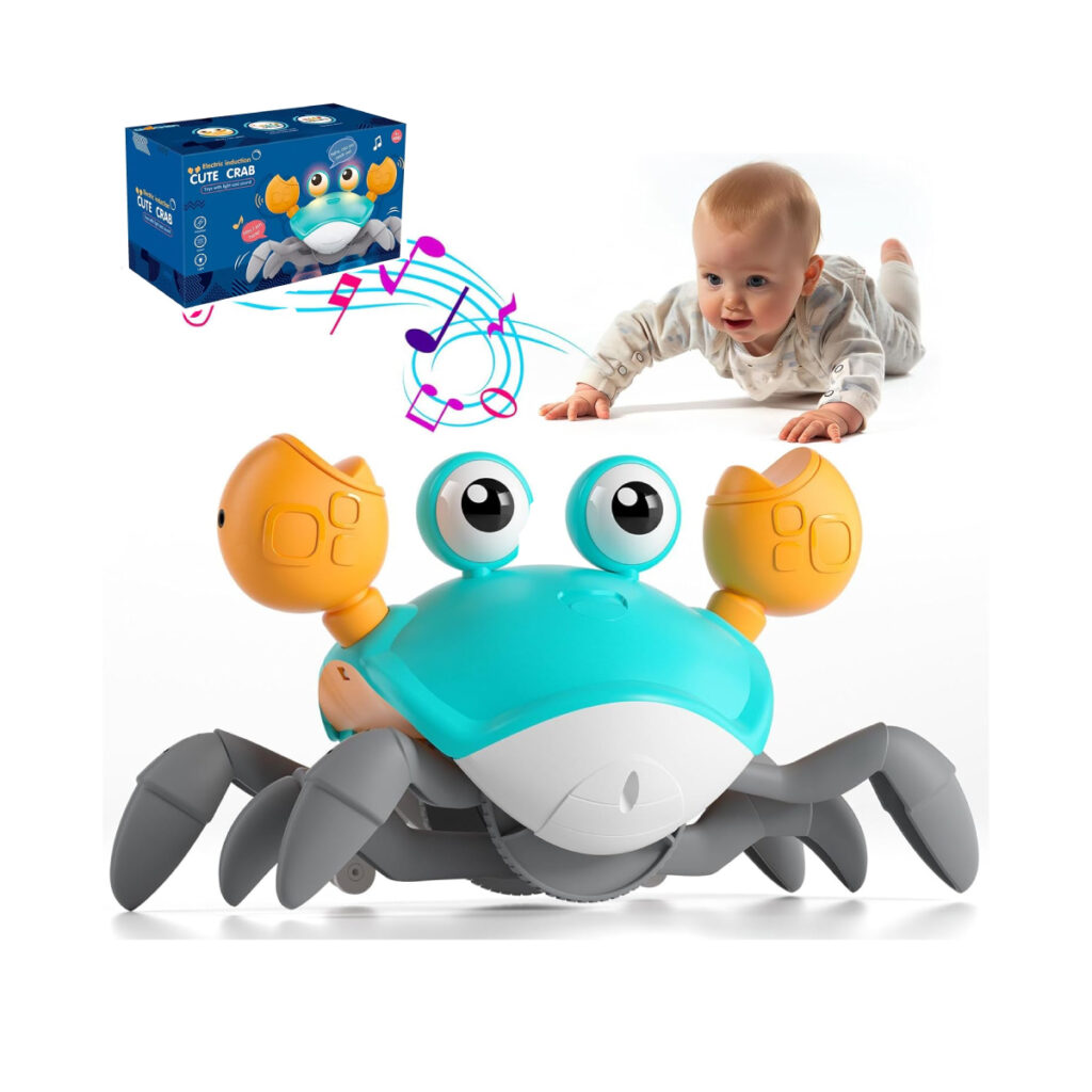 - Despierta la curiosidad: Los movimientos y sonidos del cangrejo capturan la atención del bebé, manteniéndolo activo y entretenido.