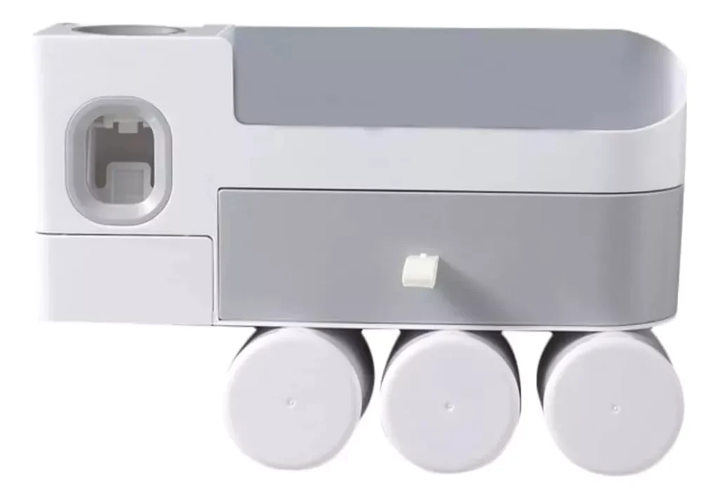 Mantén tu baño organizado y optimiza tu rutina diaria con este práctico dispensador automático de pasta dental. Incluye un porta cepillos para toda la familia y 3 vasos imantados que se adhieren fácilmente. Su diseño compacto y moderno ayuda a ahorrar espacio y mantiene los cepillos protegidos y limpios. Perfecto para hogares que buscan una solución funcional y estética para el baño.