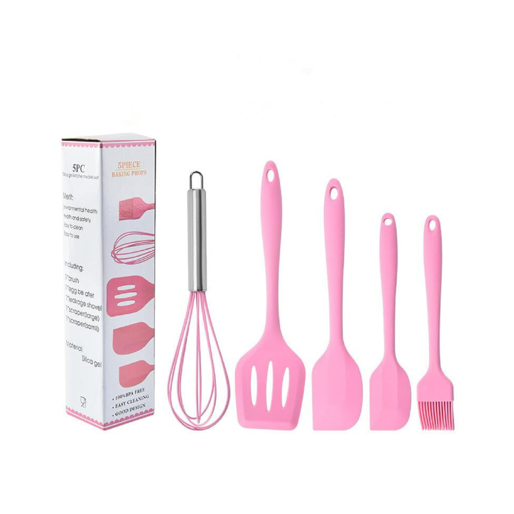 Kit 5 Piezas Utensilios De Cocina De Silicona Rosado |rt®Set de Utensilios de Silicona para Cocina / Repostería y Horneado / Antiadherentes y Resistentes al Calor 🍰🍳