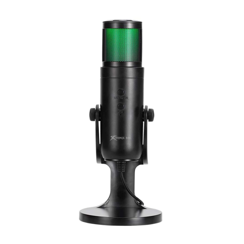 MICROFONO XTRIKE ME XMC-03 USB RGB BASEMicrófono para streaming, juegos, el mejor compañero para juegos de computadora, diseño de cuerpo giratorio de 180 grados, equipado con una base grande, no es fácil de caer, la cabeza con diseño de malla metálica completa es más duradera y el sonido puede ser captado por el alto núcleo de sensibilidad.