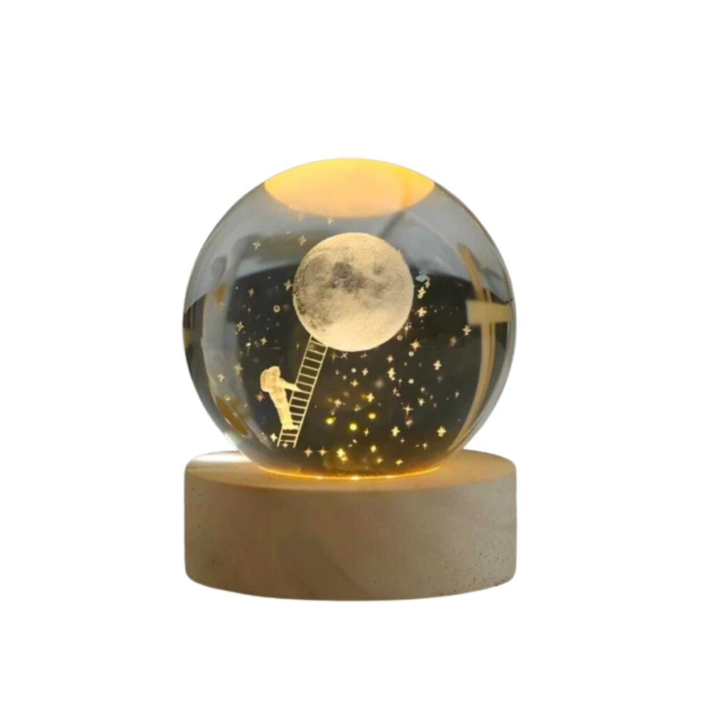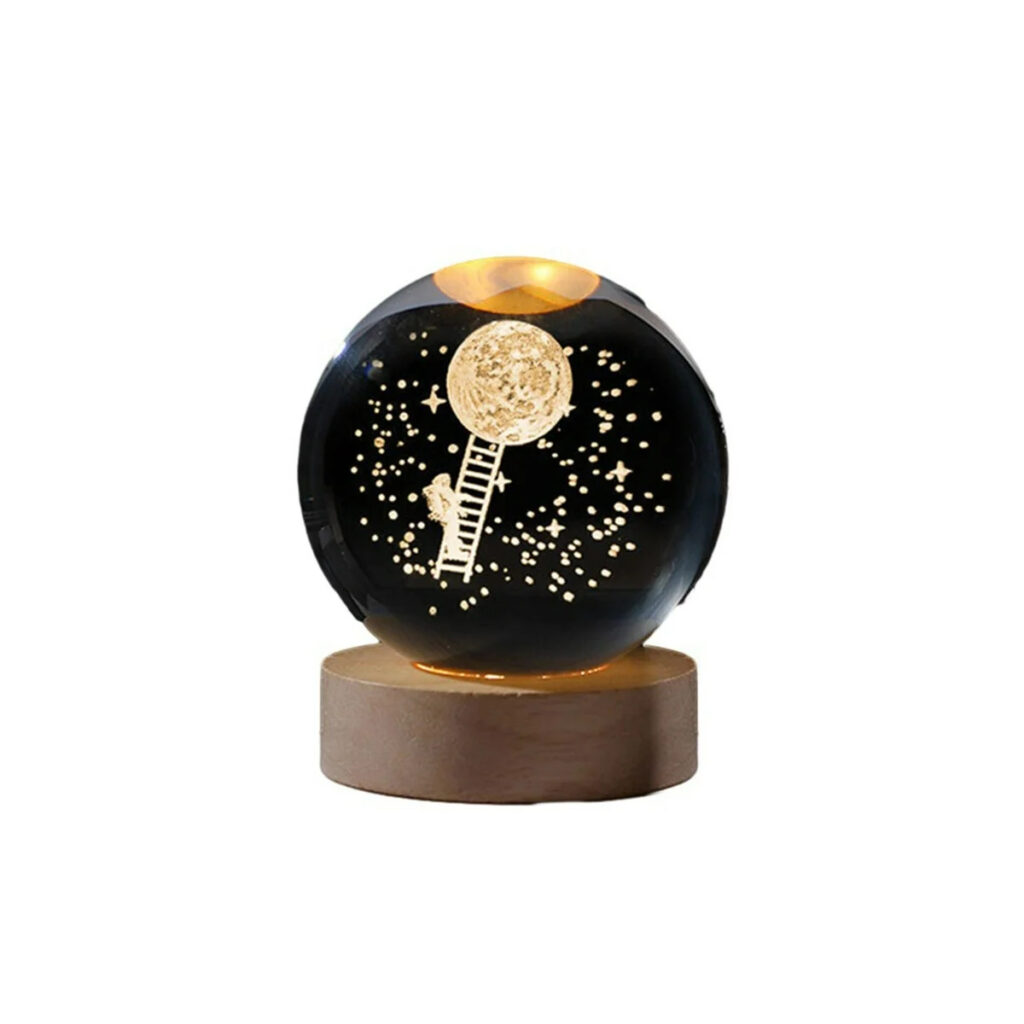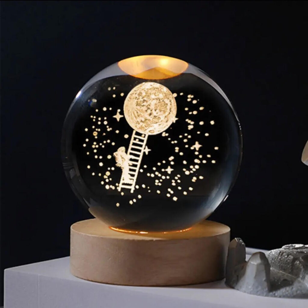 Veladora Bola de Cristal Base de Madera Modelo Astronauta Escalera a LunaLámpara Escalera con Astronauta a la Luna 🌕🚀