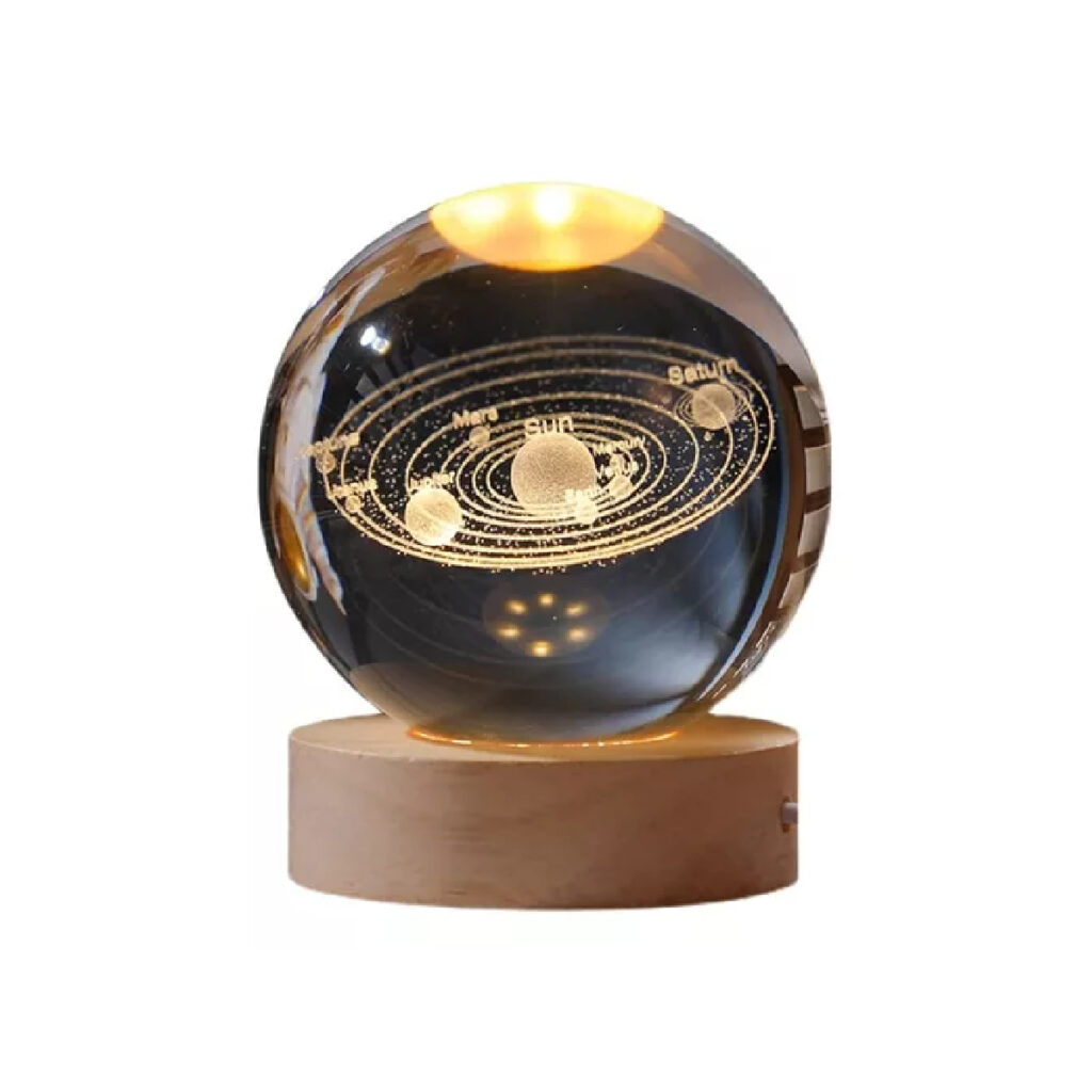 Veladora Bola de Cristal Base de Madera Modelo Sisitema SolarLámpara Sistema Solar con Luces LED y Base de Madera 🌍✨